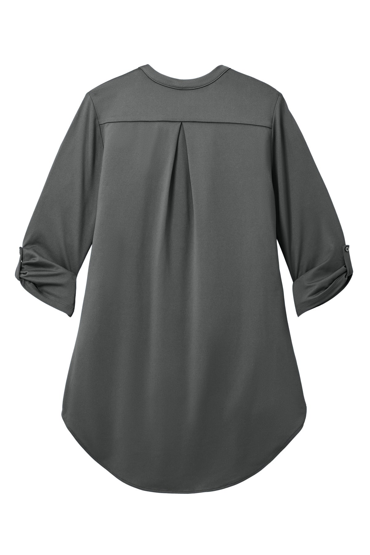 A polished look is easily achieved in this elevated style that combines professionalism with snag- and odor-resistance plus moisture wicking performance. 5.6-ounce 94/6 poly/spandex jersey Snag-resistant Stretch Moisture-wicking Odor-resistant Easy Care Y-neck collar and placket Back yoke with center back pleat Roll sleeves with button tab cuffs Longer length Rounded drop tail hem Tag-free label